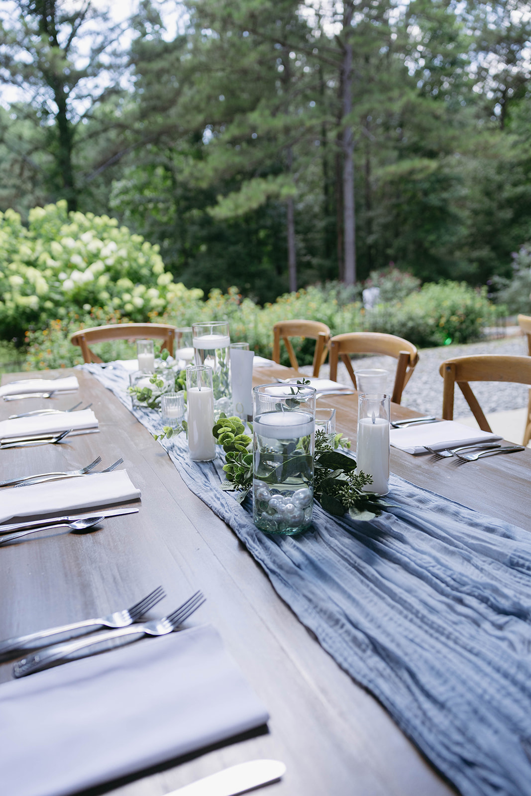 If you love a dreamy, romantic aesthetic, the Floating Candle & Runner Package is a beautiful choice. Featuring floating candle vases with pearl accents, greenery garlands, runners, and votives, this option creates an ethereal look that feels effortless and refined—perfect for couples drawn to soft lighting and elegant details.